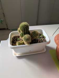 今年の春ごろだったか、NEXUS社内に、プランターの植物が仲間入りしました。スタッフに詳しい者がいないため、ただ見よう見まねでときどき水をやったりする程度のお付き合いをしています。マザーリーフとサボテン(名前不明)です。寒いから、日当たりの良い場所に移動しました。